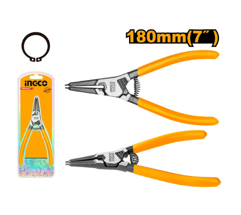 O Alicate para Anel Externo Ponta Reta Ingco 7" (180mm) é a ferramenta ideal para trabalhos de precisão. Com cabeça reta e design de retenção externa, oferece controle total na instalação de anéis. Seu diâmetro de cabeça de 1,8mm e empunhadura ergonômica e emborrachada garantem conforto e firmeza durante o uso. Compacto e eficiente, vem acondicionado em cartela plástica para maior proteção e fácil armazenamento.